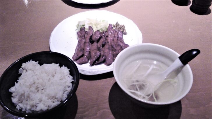 それで注文したのはオーソドックスな牛たん定食でした。牛たん定食の内容は、牛たん、麦飯、テールスープに漬け物、青唐辛子みそと通常の牛たん定食の条件を満たしています。牛たんは柔らかくて本当に美味しいです。ただ、他店と少し違うのはテールスープの量が少ないかな?思えたことぐらいでした。これは仕方ないですね。