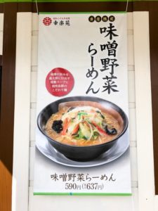 看板は「野菜 らーめん 幸楽苑」となっています。緑の看板の幸楽苑の特徴なのだそうです。