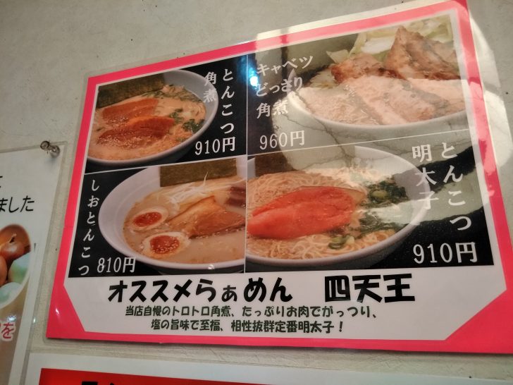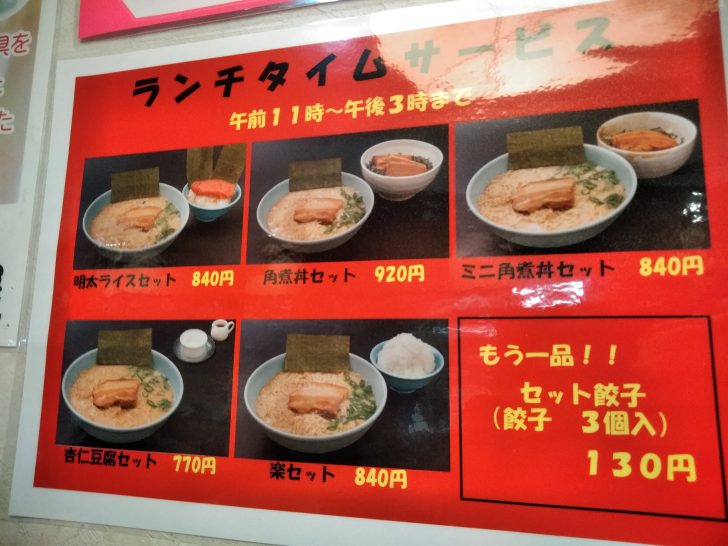 とんこつらぁめん『楽仙台泉分店』のメニュー