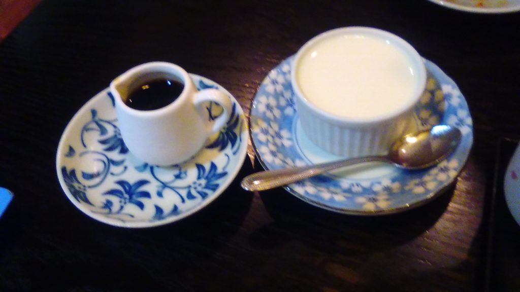 これが、かみさんが注文した杏仁豆腐です。隣りは黒蜜とのことです。お好みでかけて食べると美味しいようです。