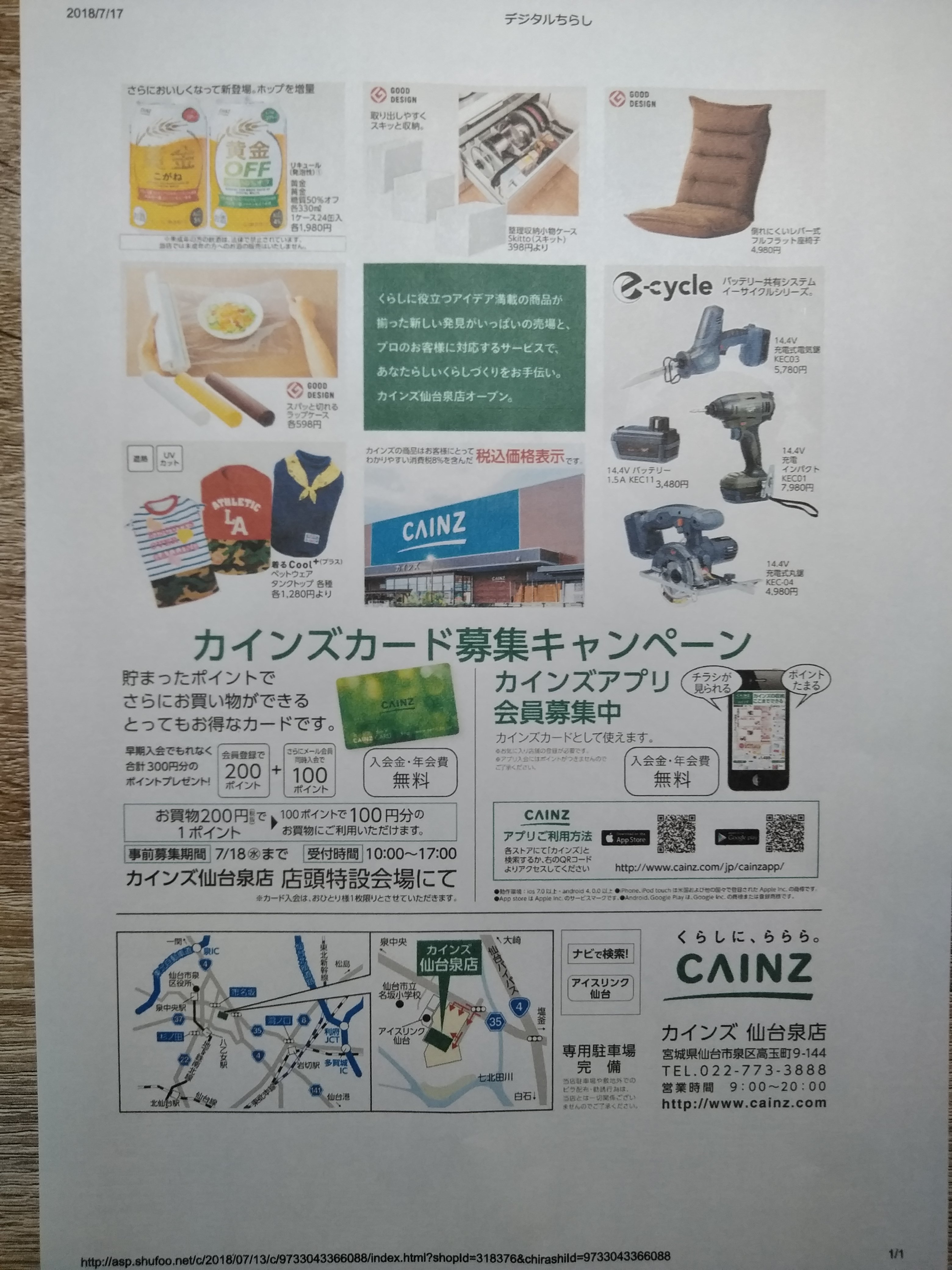 ようです。従って カインズ仙台泉店のオープン日は8月1日(水曜日)に