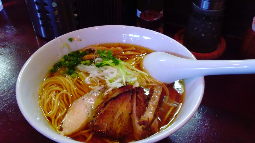これが、私の注文した『塩鶏そば』ですが、具材は、鶏と豚の2種類のチャーシューが入ってます。中細のストレート麺がモチモチして美味しいですね。鶏の出汁が効いているあっさり塩味で美味しいです。