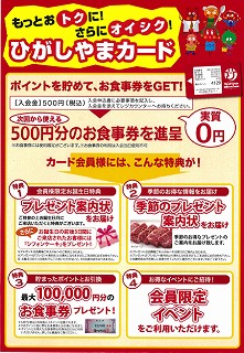 また、ひがしやまでは、カード会員になると、お得な特典があるようです!