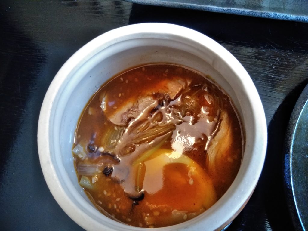 10分程で料理が運ばれてきました。壺つけ麺のスープは熱々になっているので、火傷しないように店員の若くて綺麗なお姉さんが、壺の蓋を取ってくれました。