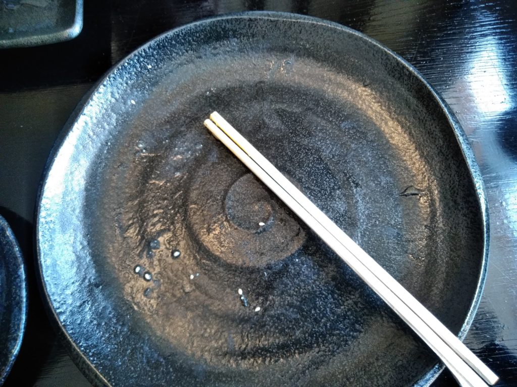 最後に割りスープをいれて、つけ汁も完食しました。うまかったです!ライスを頼んで、割り飯にしても良かったと後悔しました。