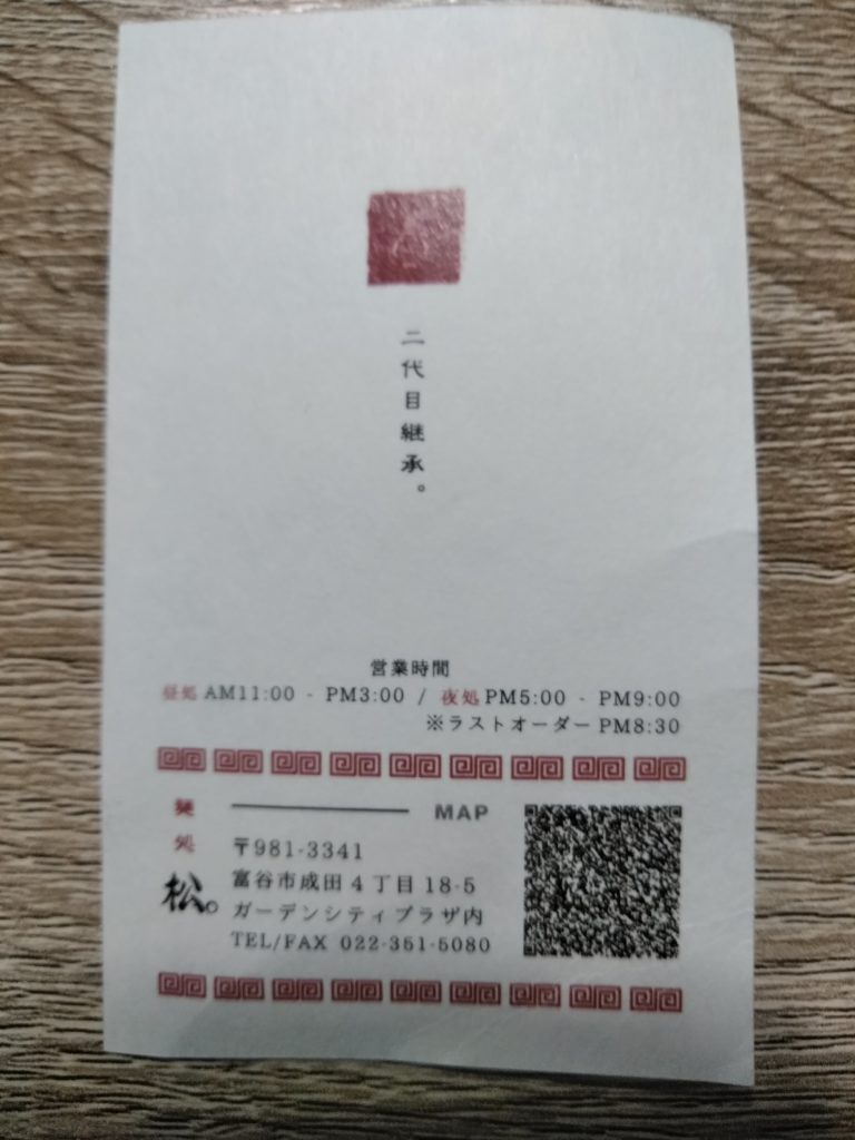 癖になる味なんですよね。5年前に行ったのは、同じ会社の人に美味しいつけ麺の店があるからと連れていって貰いました。それが『梅公』でした。お店は住宅街にあり、駐車場1台と交通の便があまり良くないのでどうなんだろうと思いましたが、昼時になると沢山の人が来て、たちまち満席になり、並ぶ人も出てきました。私は、たまたますぐ近くに知り合いの会社の事務所があり、そこに車を停めさせてもらって行きました。いやー美味しかったですね!その後も行こうと思っていましたが、昼は外食ではなく、弁当になったのと、交通の便が良くないこともあり足が遠のいていました。今回、自宅近くの富谷市成田に二代目継承の『麺処 松。』がオープンしたと聞いてすぐに行きたいと思いました。
