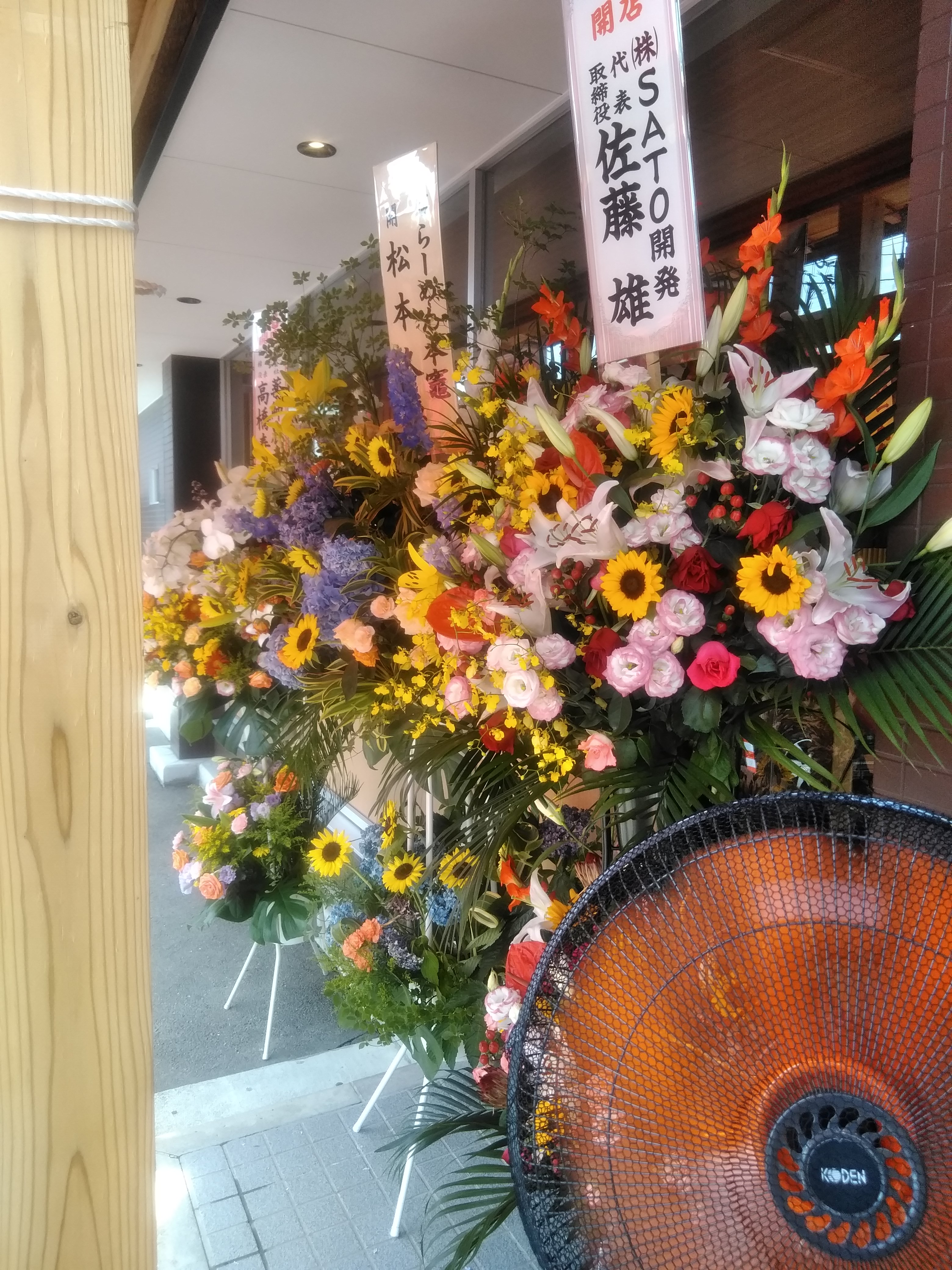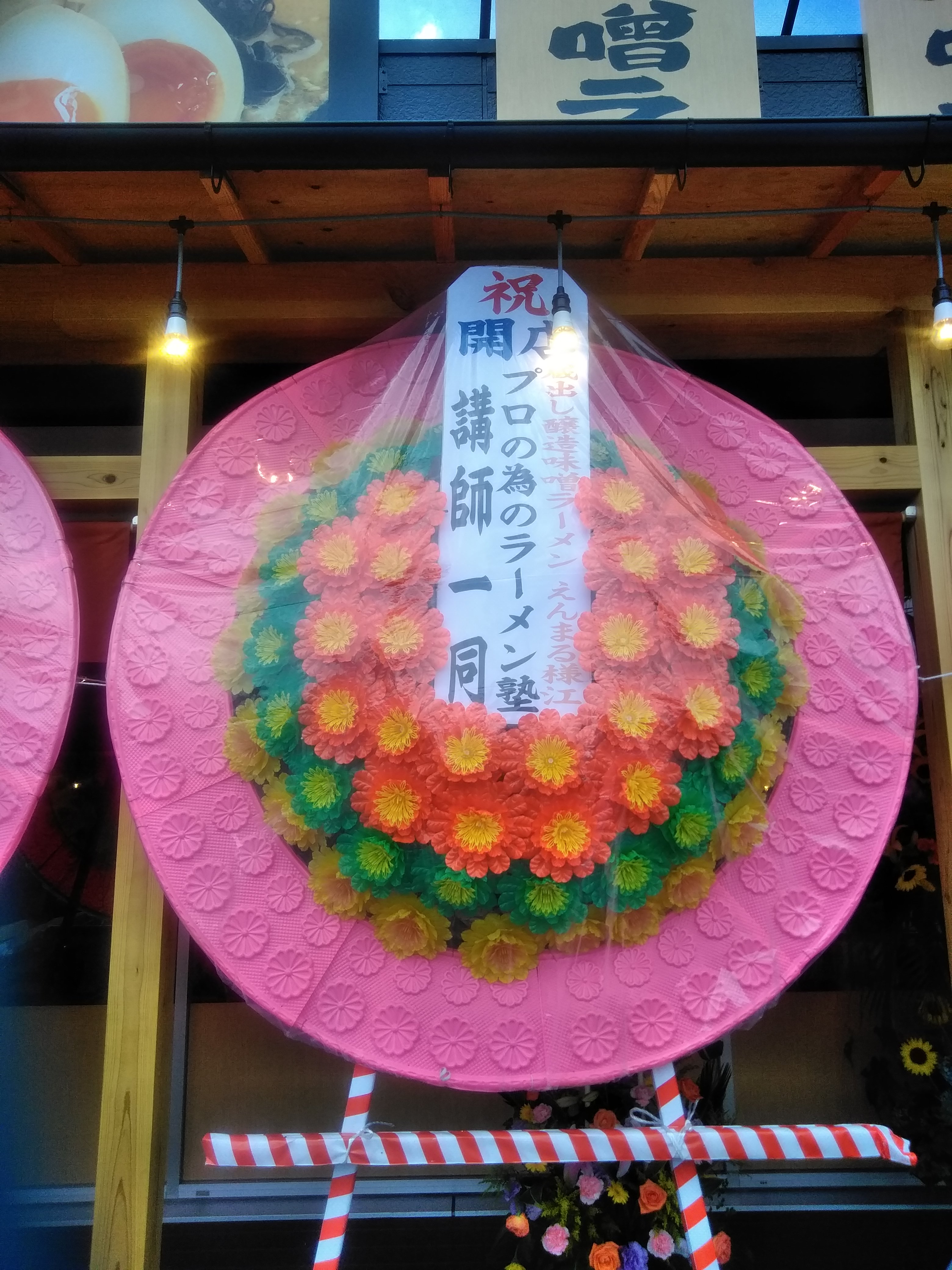 面白いところでは、プロの為のラーメン塾 講師一同の花輪がありました。この店もサポートを受けてたんですね。