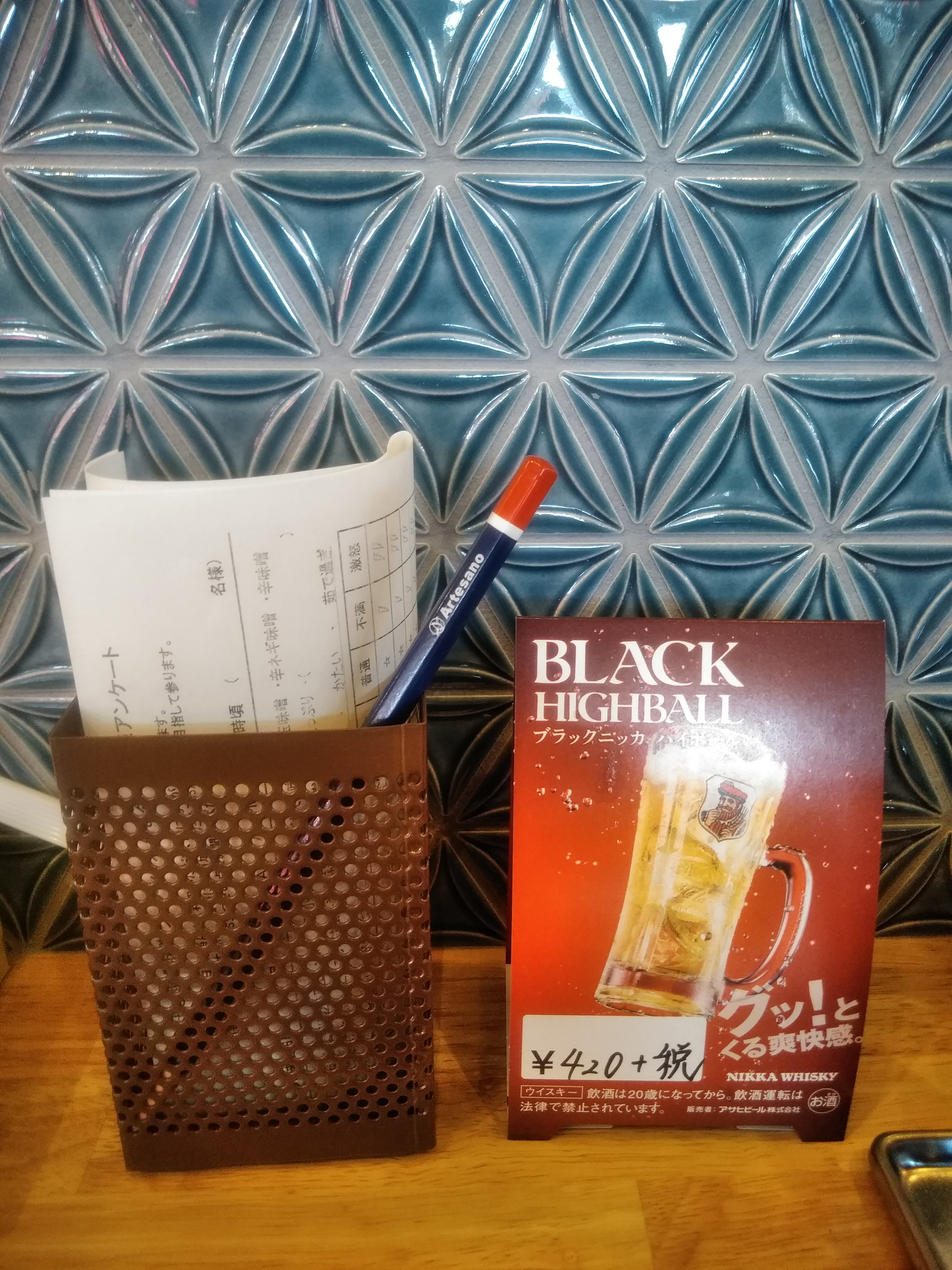 お客様アンケートと何故かブラックニッカハイボールのメニュー表がありました??