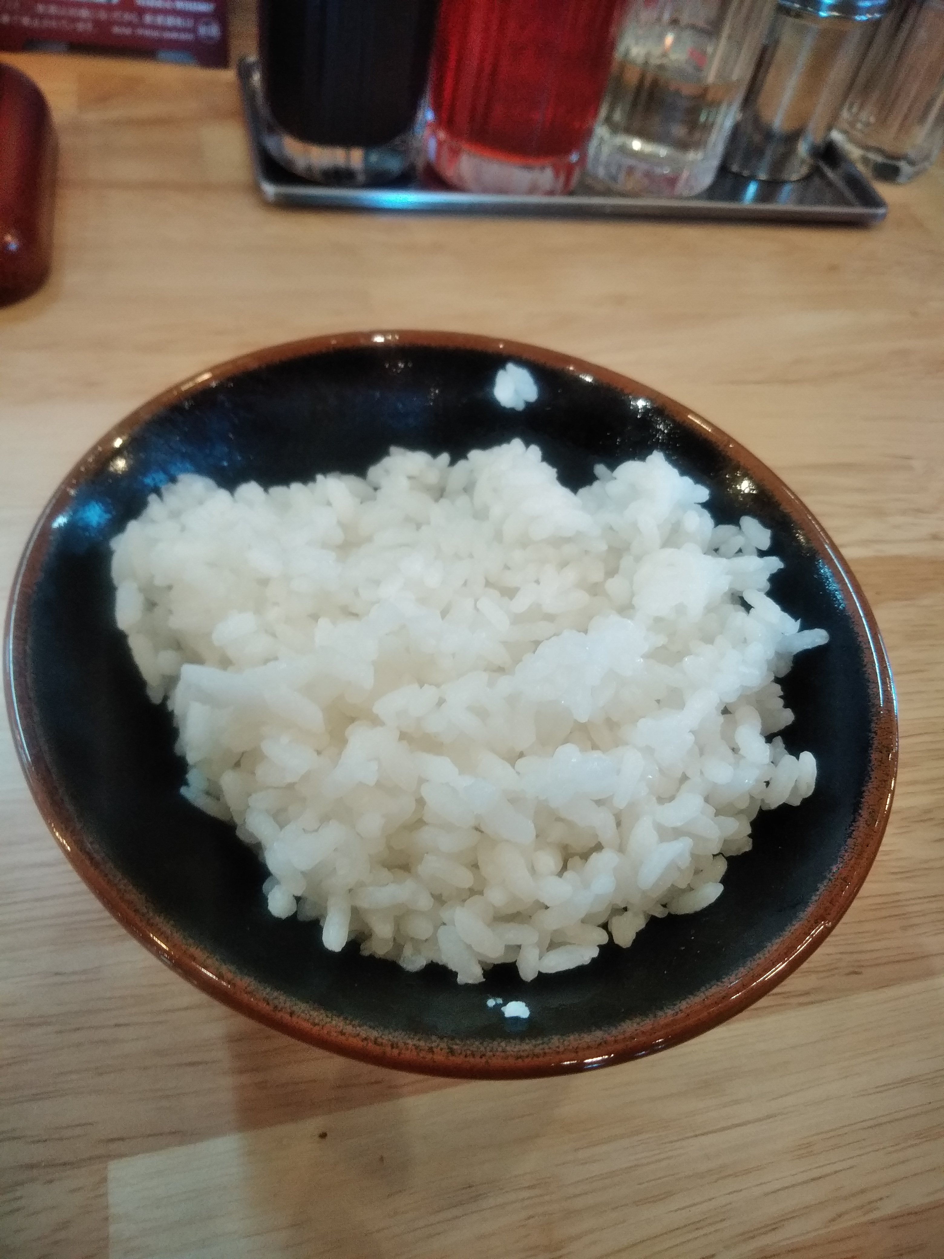 まずは無料サービスの半ライスが出てきました。何の特徴もない普通の半ライスですね。