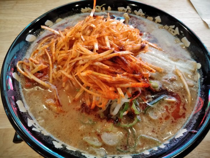 ラー油等で辛味を付けたシャキシャキのネギがたっぷり載っていて、濃厚味噌と辛味噌の辛さがマッチしており、美味しかったです。ただ、残念なのは辛味噌がスープの中に沈んでいて、最初は分かりませんでした。(写真の左端のネギの下に辛味噌が沈んでいました)最初スープを飲んだ所余り辛くないと感じましたが、少し食べてから辛味噌があることが分かり、この辛味噌を溶かして食べたら辛くなり美味しくなりました。辛いものが大好きな私にはちょうど良いのですが、辛さを調整したい人もいると思うのので、辛味噌はネギの上に載せる、別皿にする、レンゲに載せるなどで辛味を調整できた方が良いと思います。