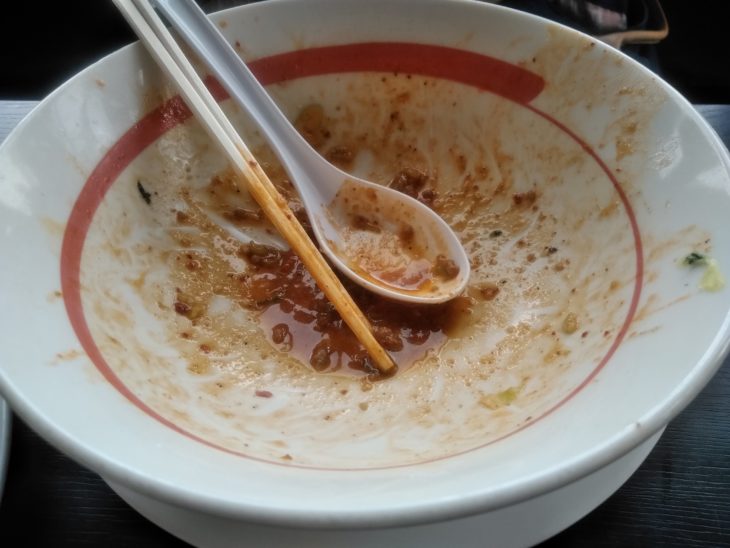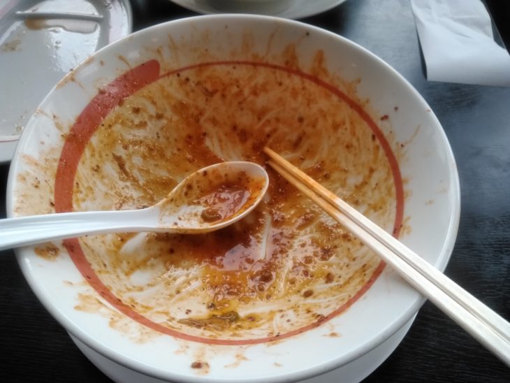 【味変】途中で酢を加えると、ぐっとまろやかな味わいになるようです。⇒酢を加えるの忘れてました。【追い飯】麺を食べ終わったらライスを投入すれば、極上メシの出来上がりのようですが、タレもミンチもほとんど残ってませんでした。追い飯をする場合は、タレやミンチをもう少し残すような食べかたをしないとダメなんですかね?