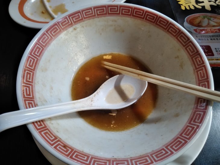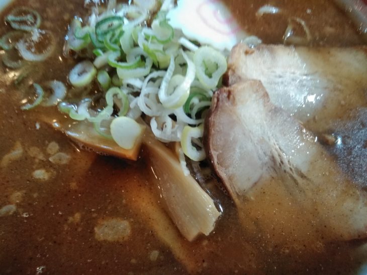 こちらがあっさり味ですが、見た目はほとんど変わらないですね。あっさり味はこってり味に比べれば少しコクが足りないかな?思えますが、あっさりしている中にも煮干しの味が効いていて深みがありますね。