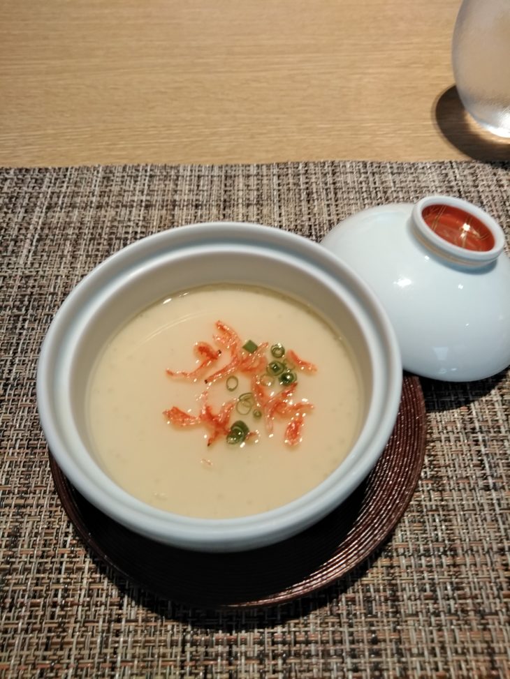 干しえびが載った茶碗蒸しでしたが、具材に何が入っていたか忘れました。特にこれはという思いはなく、ふつうの茶碗蒸しでした。