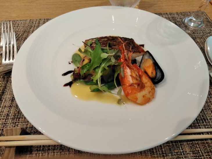 白身魚と海老とムール貝と野菜。ソースはどうだったか記憶にありませんが、美味しかったと思います。