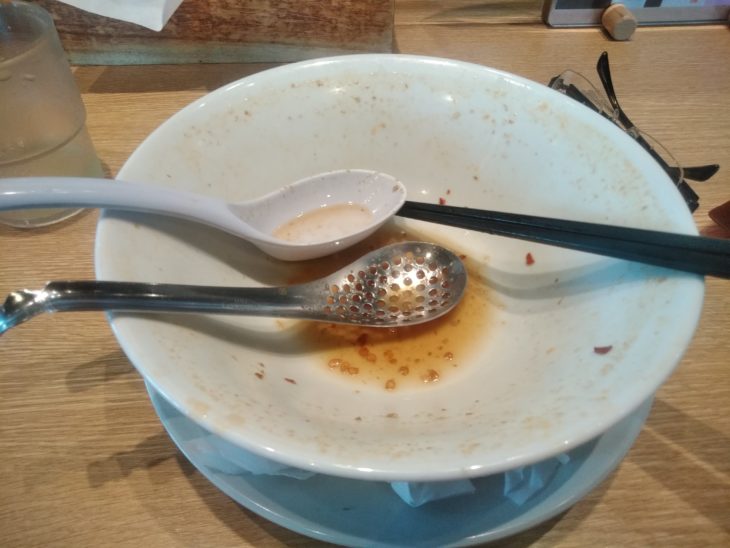 麺を食べ終わってから、穴あきのレンゲで、具材のみすくえるので便利です。