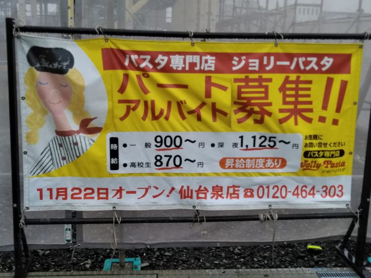 9月30日に、再度確認したところ、ジョリーパスタ仙台泉店