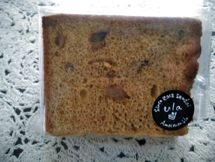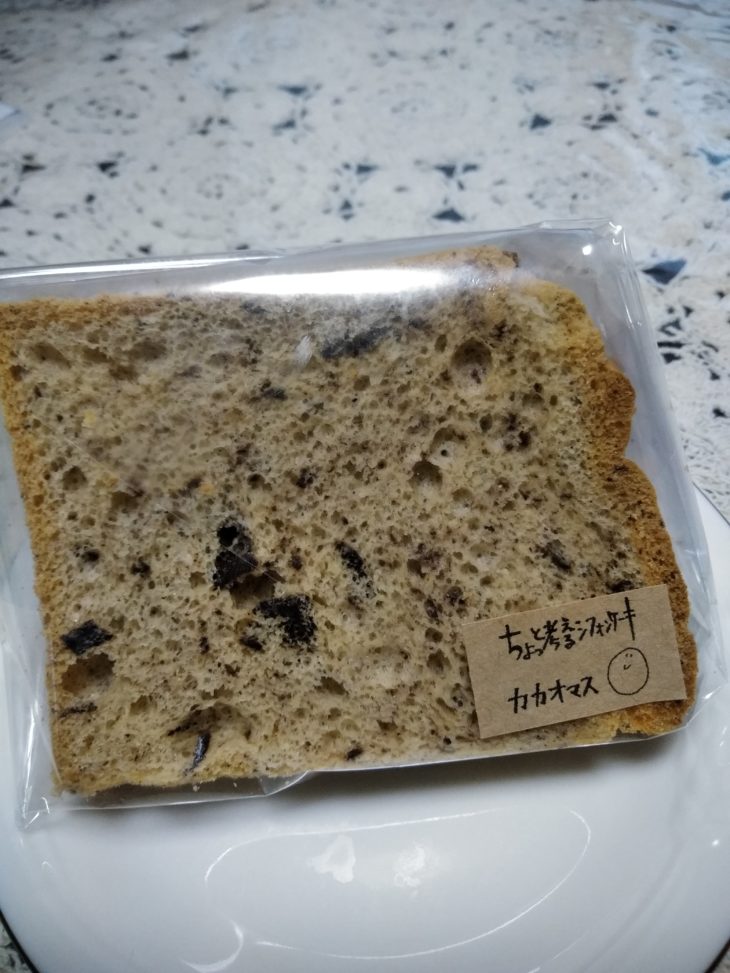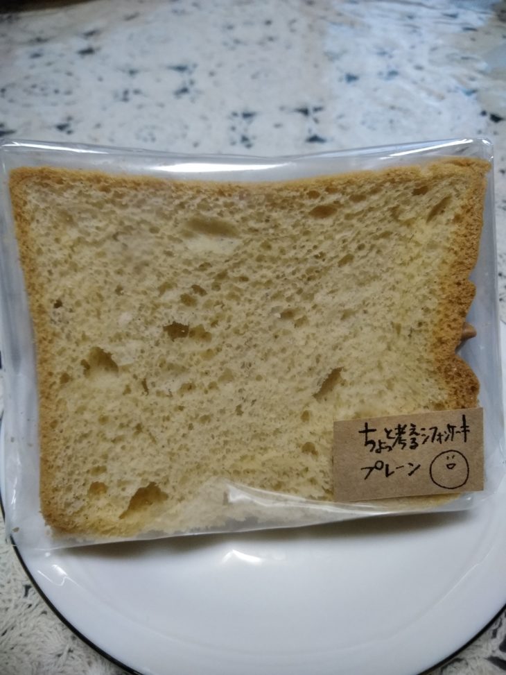 シフォンケーキは、定番のプレーン、チョコレート、クルミ、紅茶、季節のフルーツを入れたもの等があります。生地がきめ細かくしっとり、ふわふわしていて甘さ控えめで美味しい。また、シフォンケーキの端が香ばしくて、パンの耳のようで弾力があって食感が良いです。