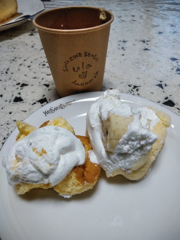 いつもある訳ではないですが、運が良ければ買えます。これは、ロールケーキの端っこをカップに詰めて、生クリームを掛けたもので、なんと100円(税抜)で買えます。チョーお得です。