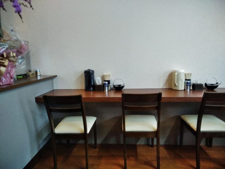 カウンターは9席で5席と4席の2ケ所に分かれています。ひとりでも入り易いですね。
