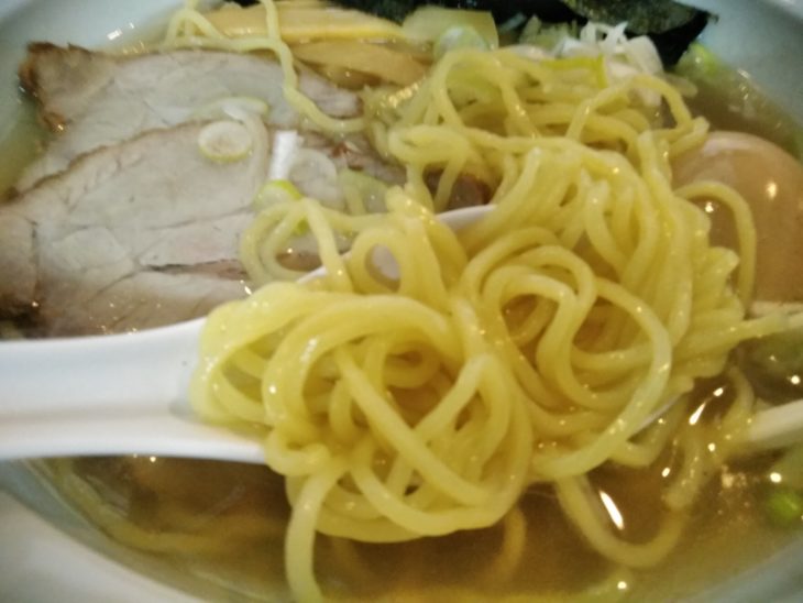 麺は黄色でストレート中太麺。こしがあり、スープに良く合っていて美味しいです。