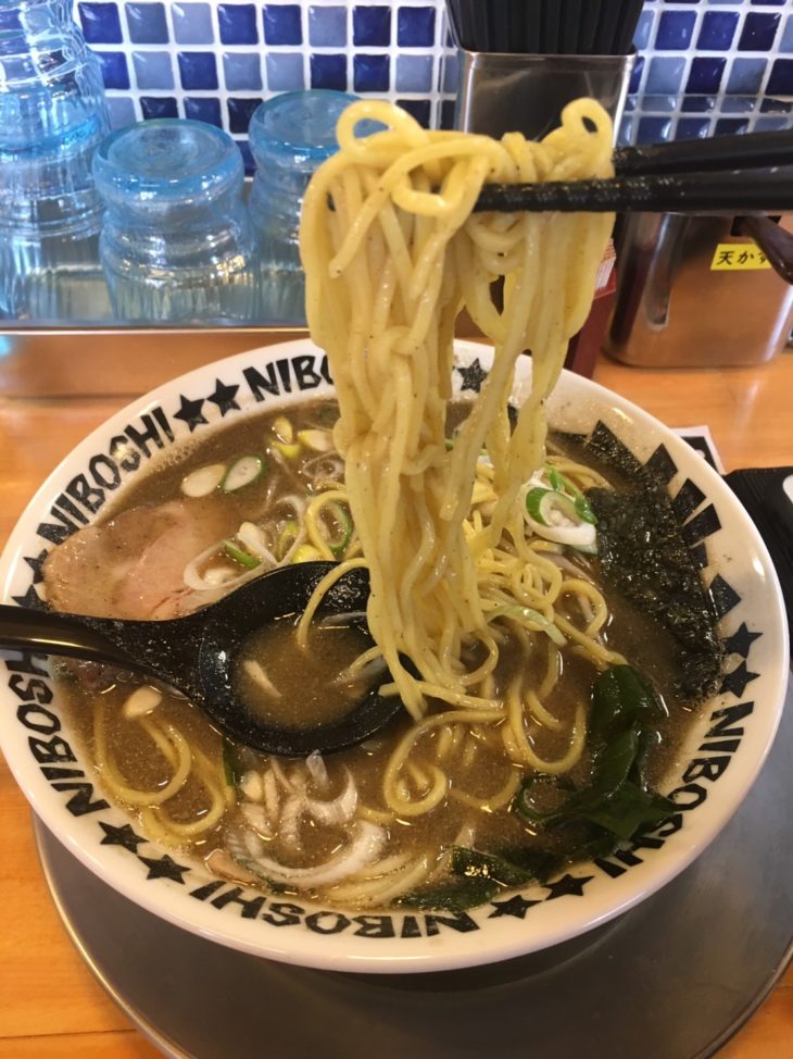 今回は特濃煮干しらーめんを注文。味の濃さ強め、油の量は普通にしました。5分ほどで着丼しました。具はチャーシュー、ネギ、ワカメ、海苔、豆苗のみで、値段の割には寂しい気がする。麺は中細のストレート麺ですね。特濃だけあって煮干し感が半端じゃない位強め。煮干の粉?結構入っていて砂のようにじゃりじゃりしています。また、味も塩辛くてスープを飲み干す気にはなれませんでした。私は煮干し好きなほうですが、ここまでだとやり過ぎだと感じてしまいます。