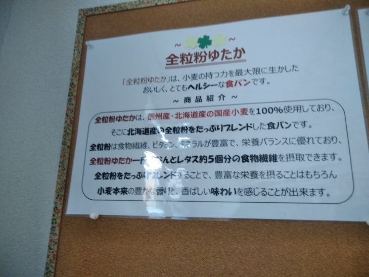 | ゆたか | 信州・北海道の国産小麦100%使用。中までふんわりモチモチ。耳まで美味しい一品。 | 380円 |