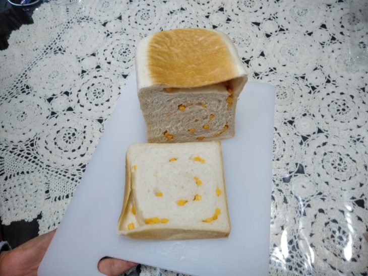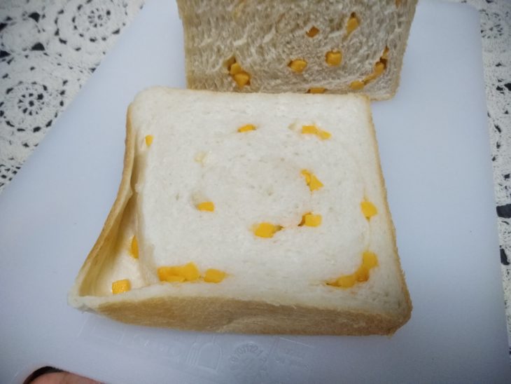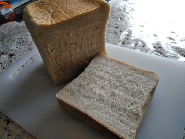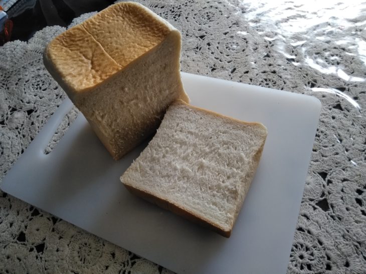まだ温かくて、ふんわりしている為、パン切り包丁でも切りにくいです。