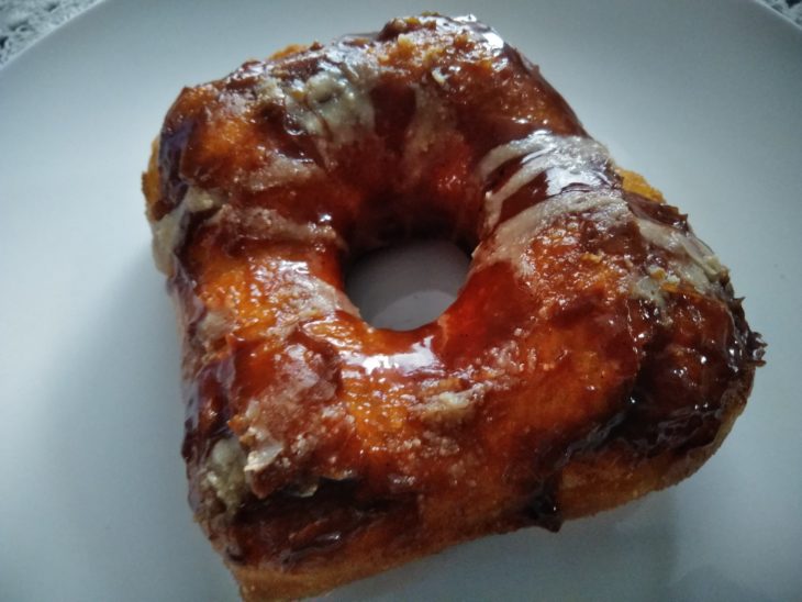 表面がグレーズで輝いているし、シュガーミルクが固まっていてふかふかの弾力のある生地と優しい甘さがとっても美味しいです。