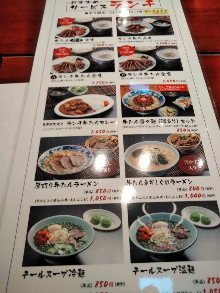 平日ランチタイムはお得です。今回は牛たん得々定食とランチ牛たん定食を注文しました。