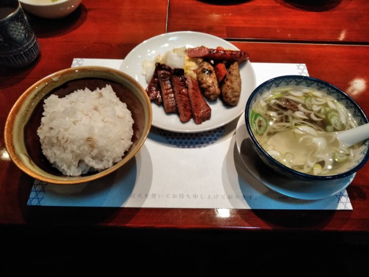 牛たんはもちろん美味しいですが、ソーセージもつくねもgoodです。付け合わせは定番の白菜の漬物南蛮味噌ですね。