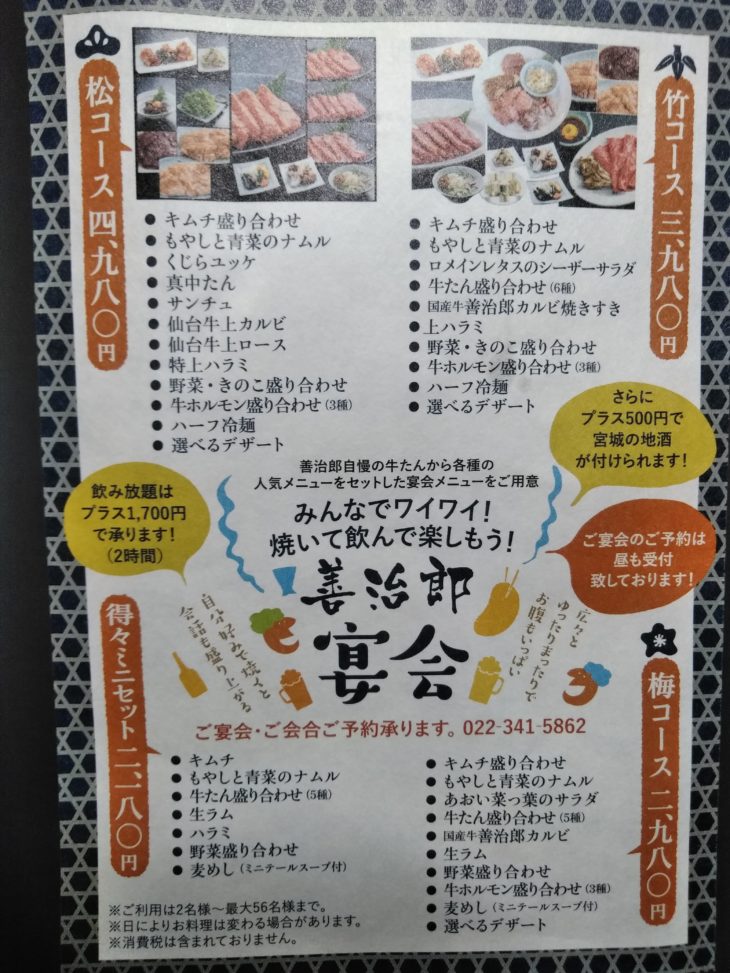 牛たん焼肉 善治郎 多賀城駅店のように焼肉をメインにやっているお店はありますが、通常の牛たん店で夕方(17:00~)焼肉ができる焼肉部があるのは北根店だけのようです。