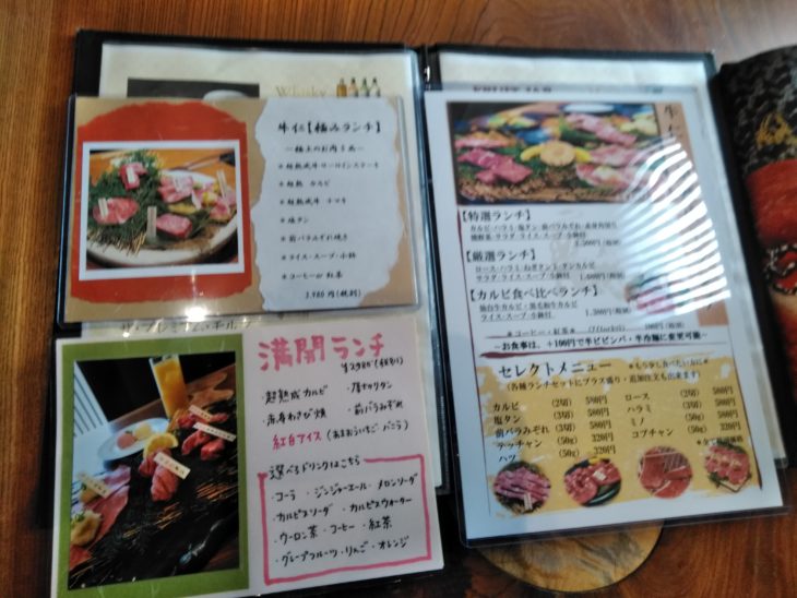 | ロース、ハラミ、ねぎタン下、タンカルビ、サラダ、ライス、スープ、小鉢 |