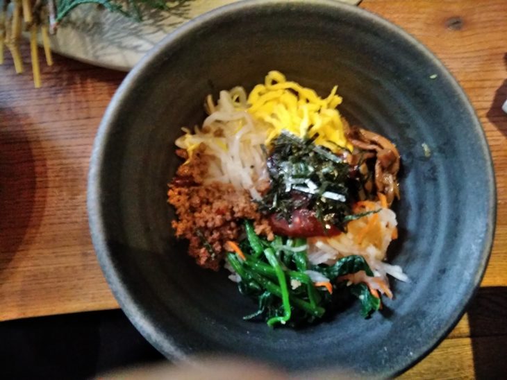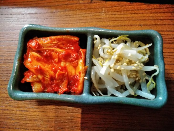 今回は奮発して極みランチ3980円を注文しました。小鉢はキムチとモヤシのナムルでした。
