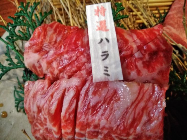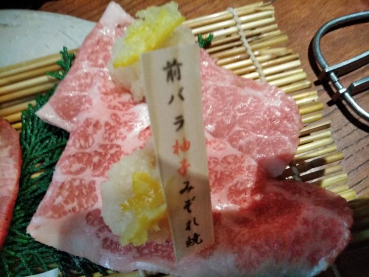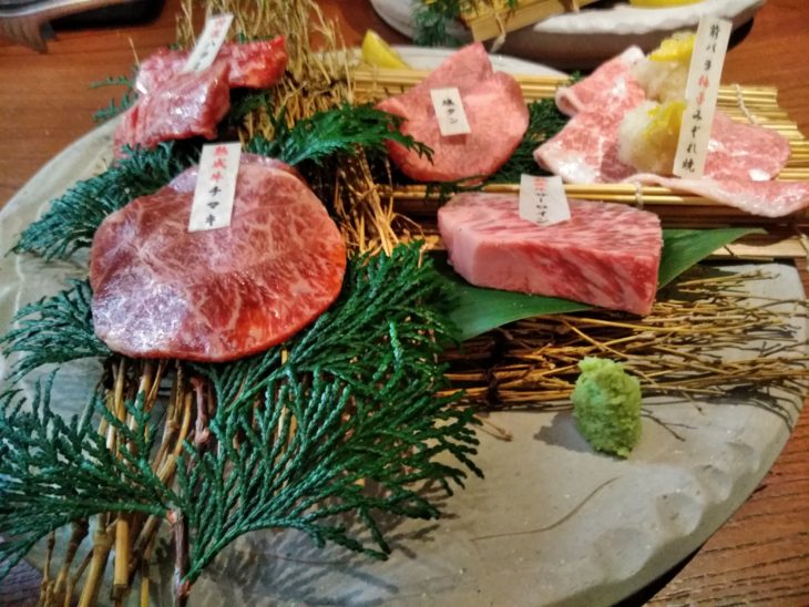 超熟成牛カルビ、厚切りタン、赤身わさび焼、前バラみぞれ焼き |