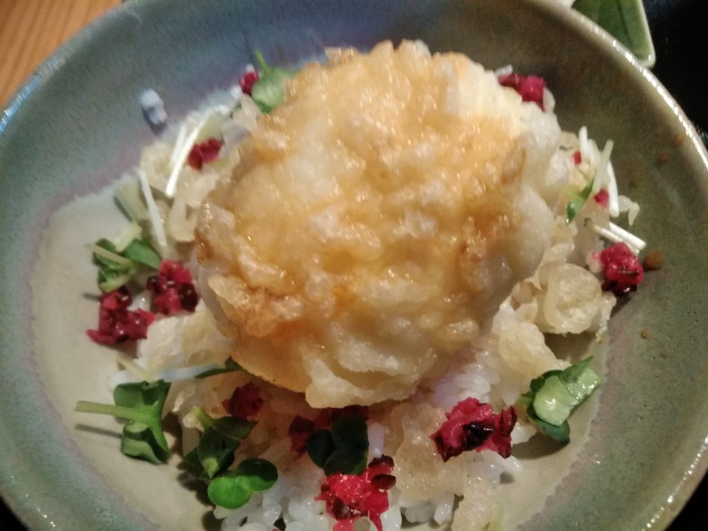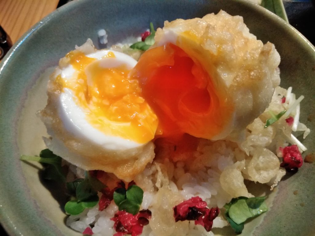 玉子のてんぷらが、半熟で美味しそうです。
