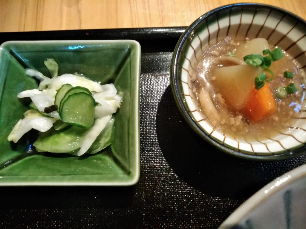 大根とにんじんの煮物とキャベツときゅうりの漬物が美味しかったです。