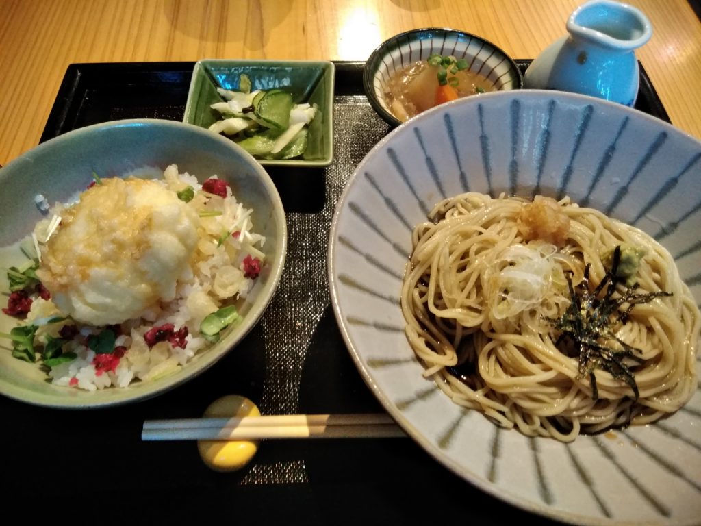 ざるそば・冷しとろろ+山菜てんぷらを注文