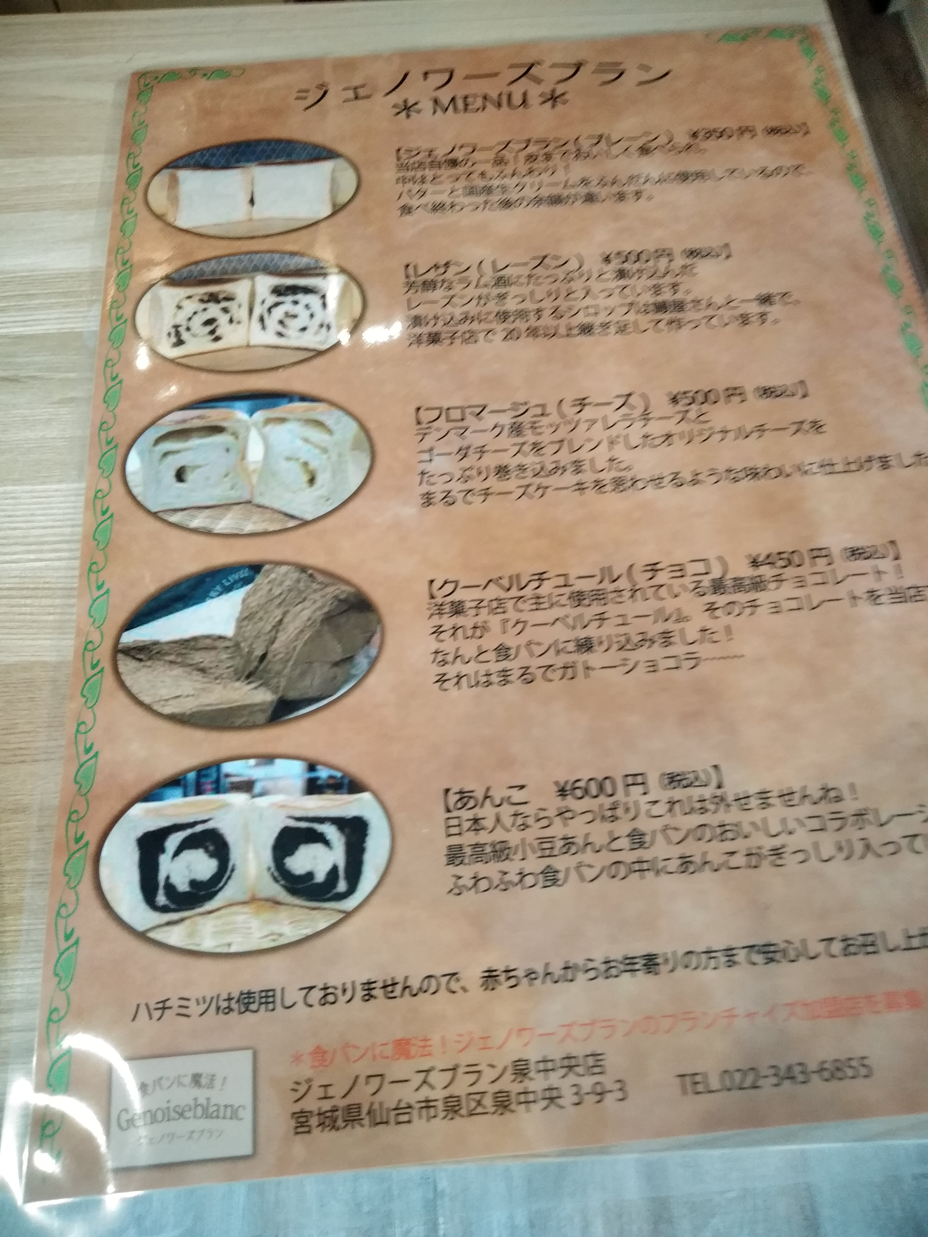 泉区はパン屋さんの激戦区です。次々に美味しいパン屋さんがオープンしています。食パン専門店も、食パン道、一本堂についで、今回のジェノワーズブランがオープンとパン屋さんには注目ですね。ジェノワーズブラン泉中央店は泉中央駅に近く交通の便が良いので、皆様も一度行ってみて下さい。
