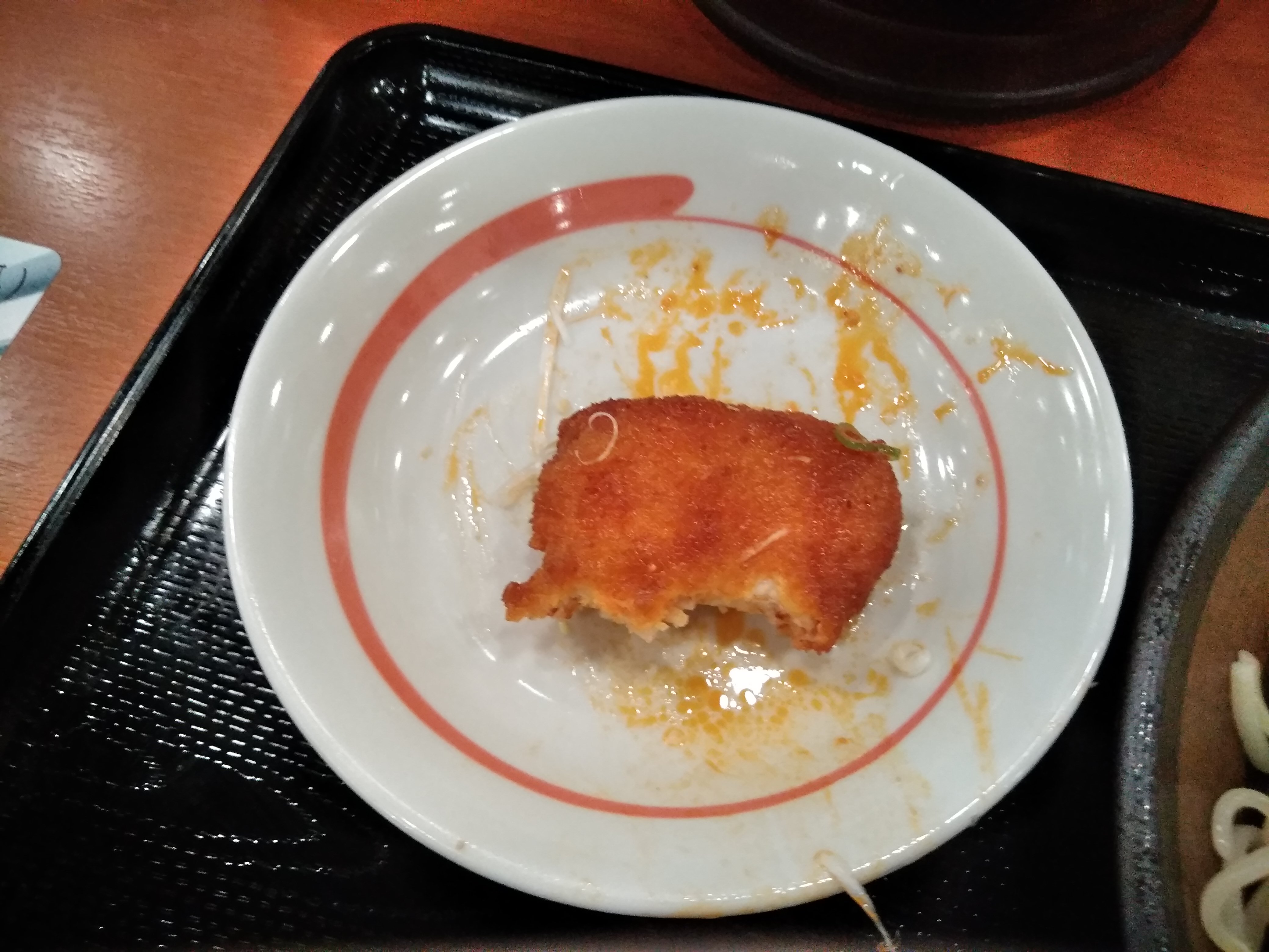 チキンカツ自体は味がしないので、つけ汁につけて食べた方が良いですね。