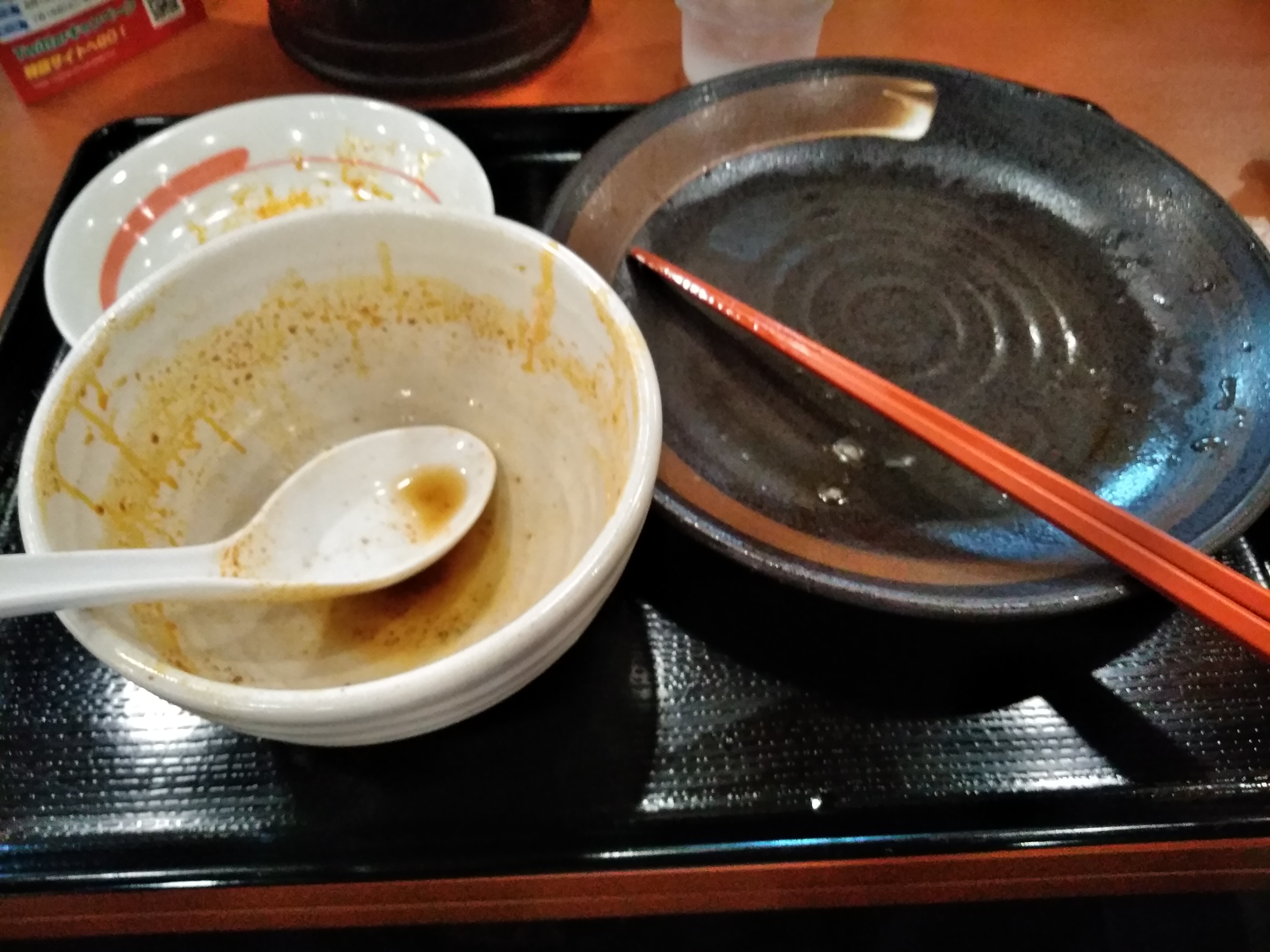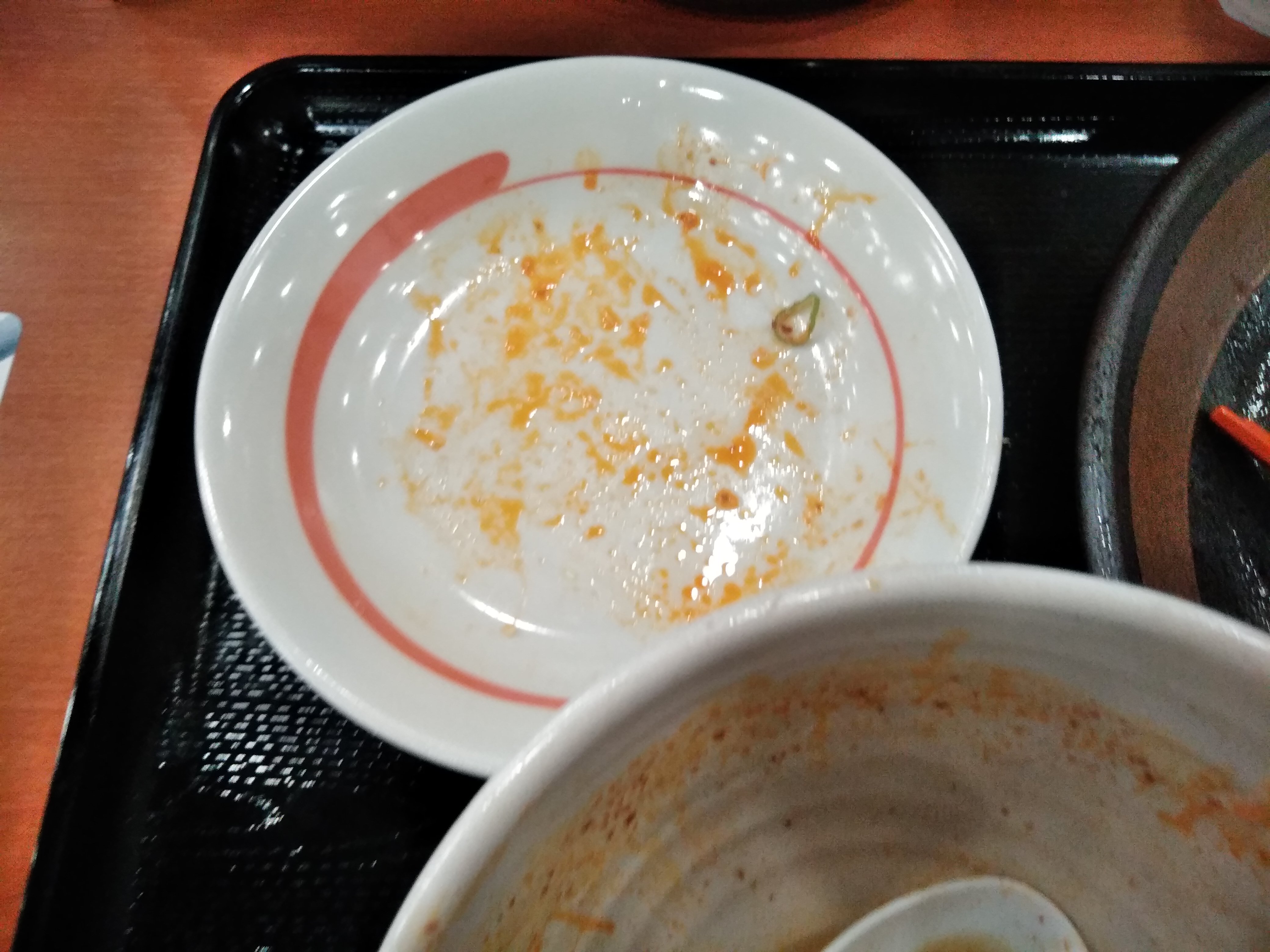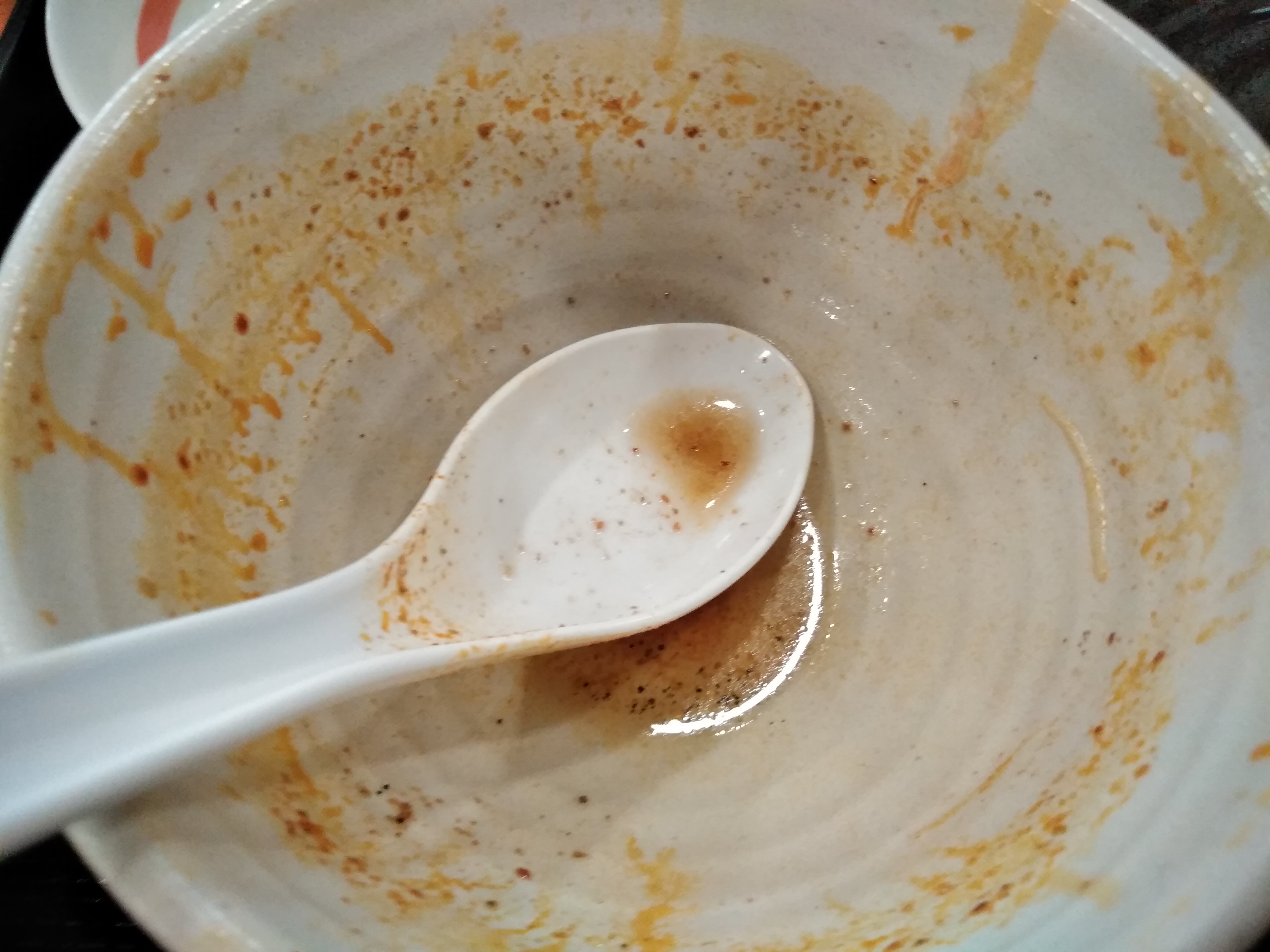 完食しました。つけ汁用に割スープを頼めるようですが、私はそのまま完飲してしまいました。辛いのですが、酸味も感じられて美味しかったです。