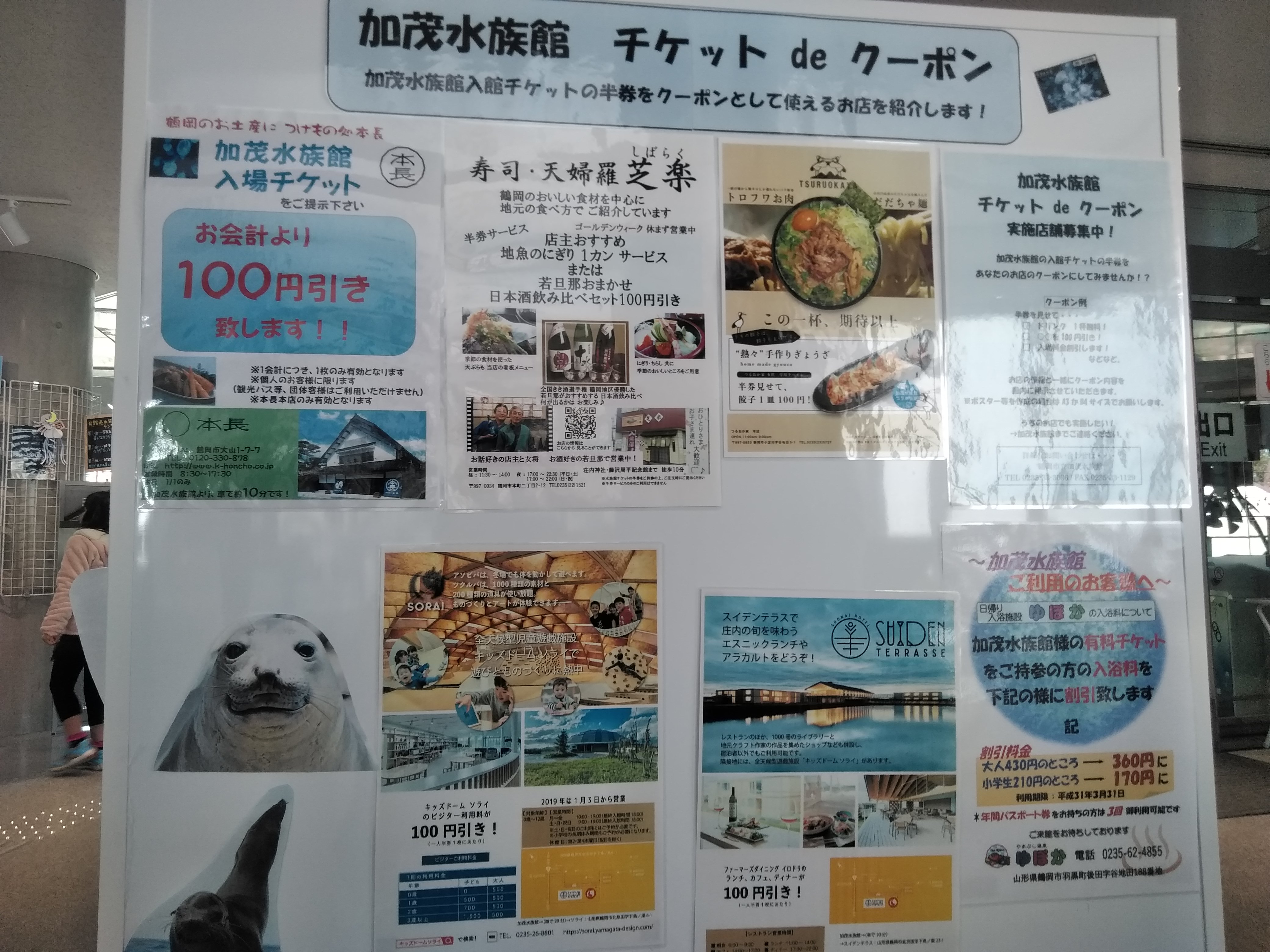 加茂水族館入館チケットの半券がクーポンとして使えるお店の情報が紹介されています。