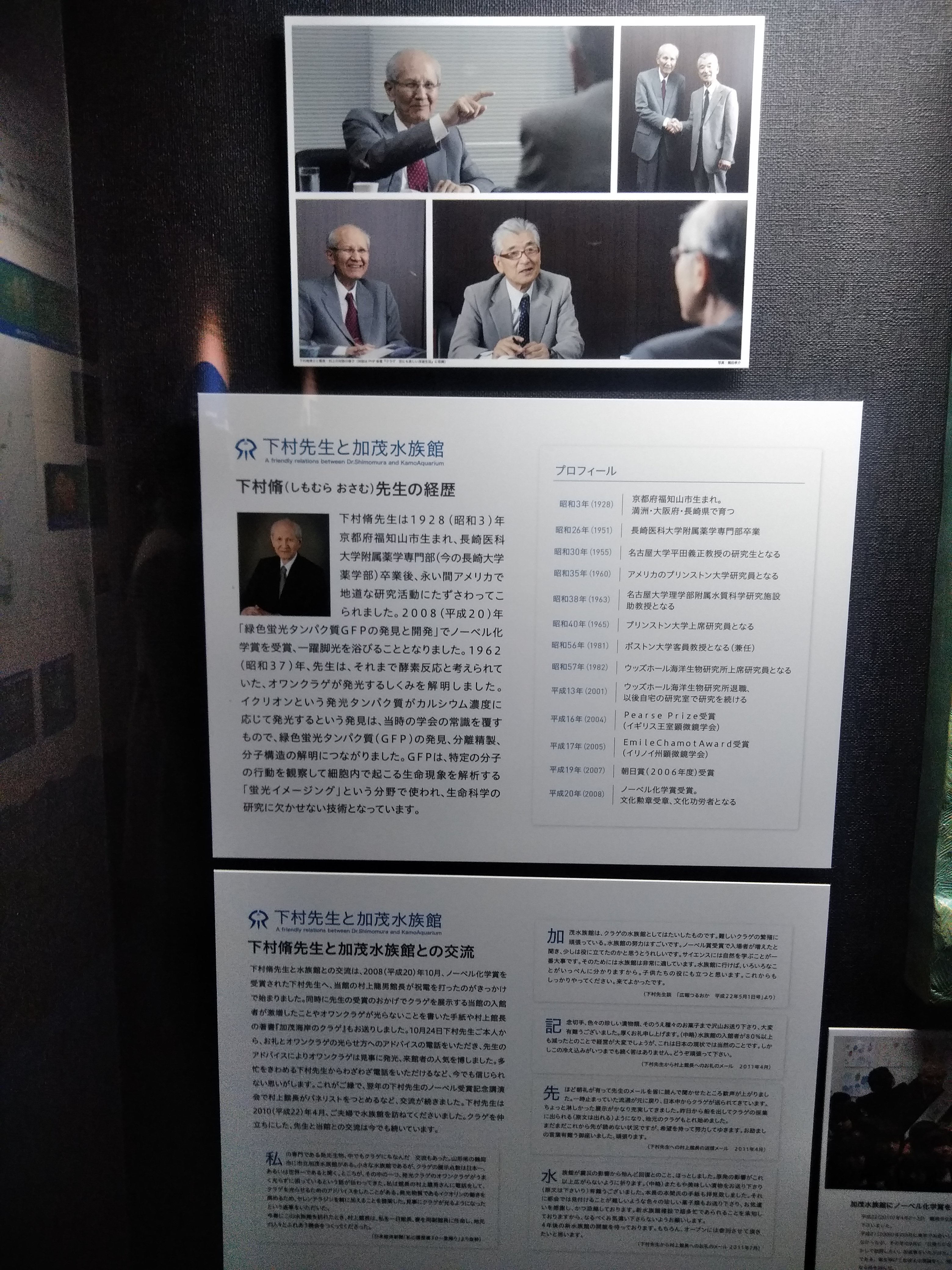 ノーベル化学賞を受賞された下村脩先生が来館された時の記念レリーフや写真なども展示されていました。