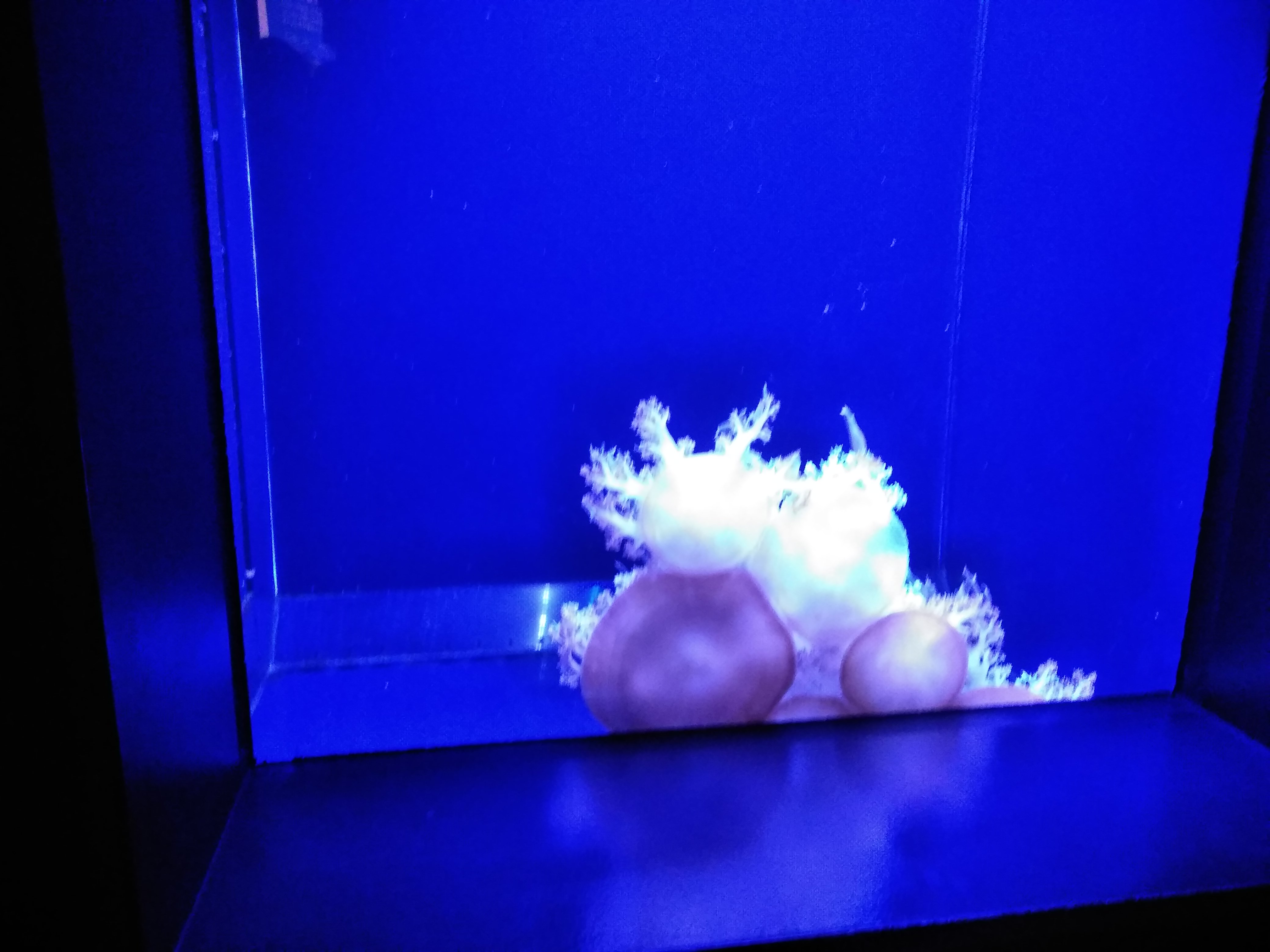 そんな時(1997年頃)、最初はまったくの偶然で、サンゴ礁の水槽に白い泡のような生き物が発生したのを職員が見つけて、エサをやり続けたら3センチ位の「サカサクラゲ」に育ったのです。それで「サカサクラゲ」を展示したところ、これを見たお客さんが、歓声をあげて喜んでくれたことに気づきました。そして、翌年に「サカサクラゲ」を含めた5種類のクラゲを展示を続けていたところ、減少一方だった入館者数が微増(2000人)に転じたのです。