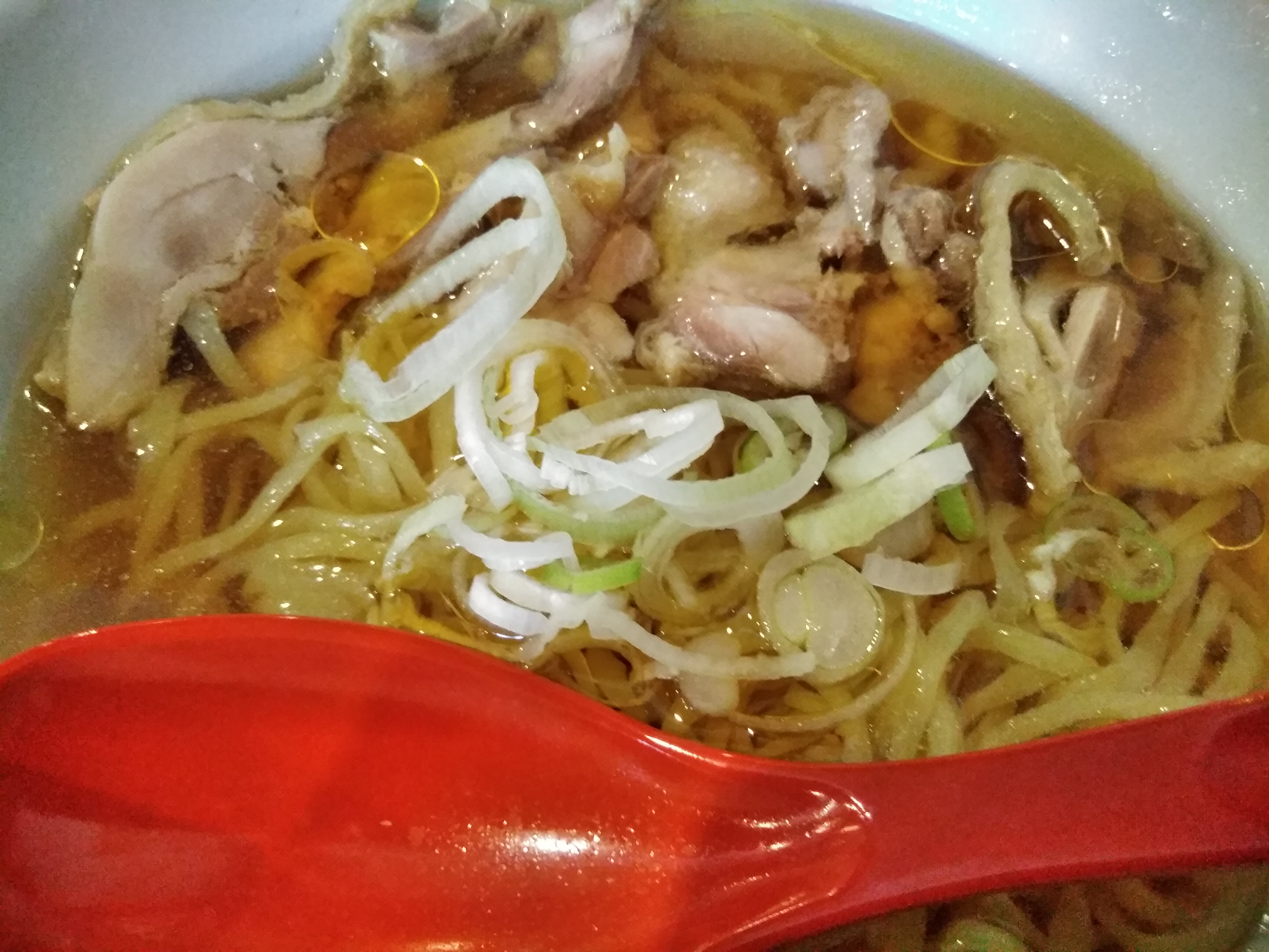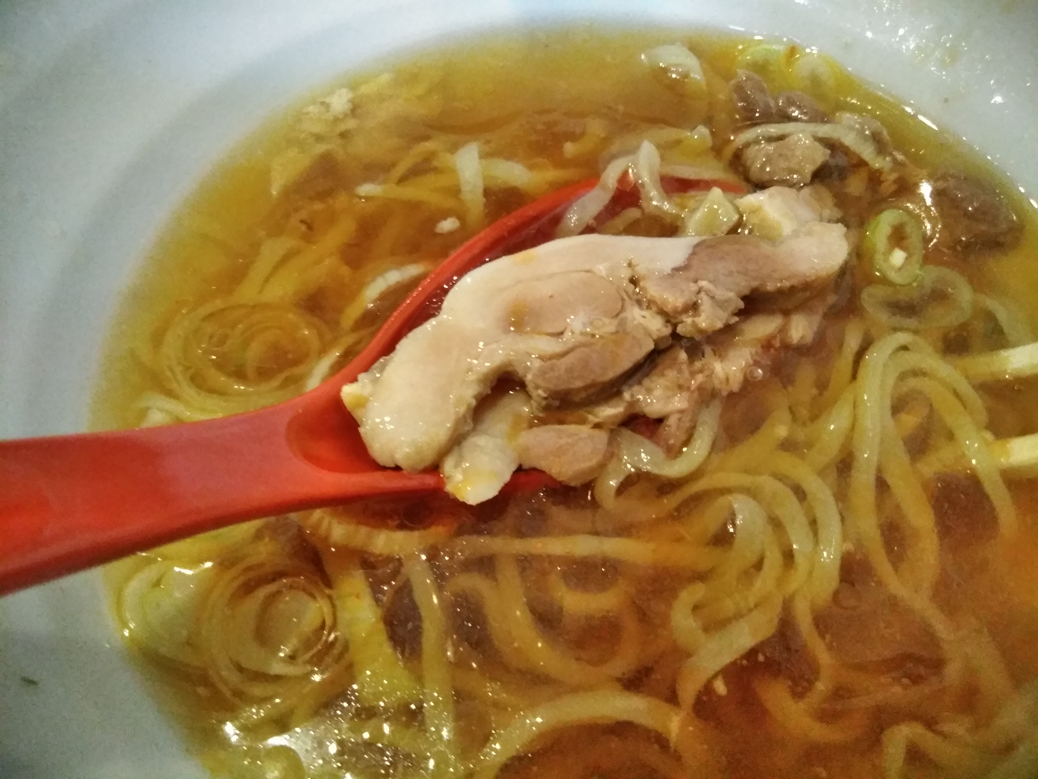 スープは山形肉そばと同じですね。鶏肉も親鳥でこりこり感が美味しいですね。中華麺は細麺でコシもあり、ツルツルとした喉越しの良い感じでした。鶏油?もそんなに多くなくあっさり目です。