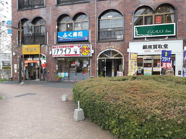 八乙女中央ビルの1Fにあります。八乙女中央ビルには、居酒屋 本気家、寿司屋 ふく寿司、不動産店 ノアライフ、銀座買取堂があります。