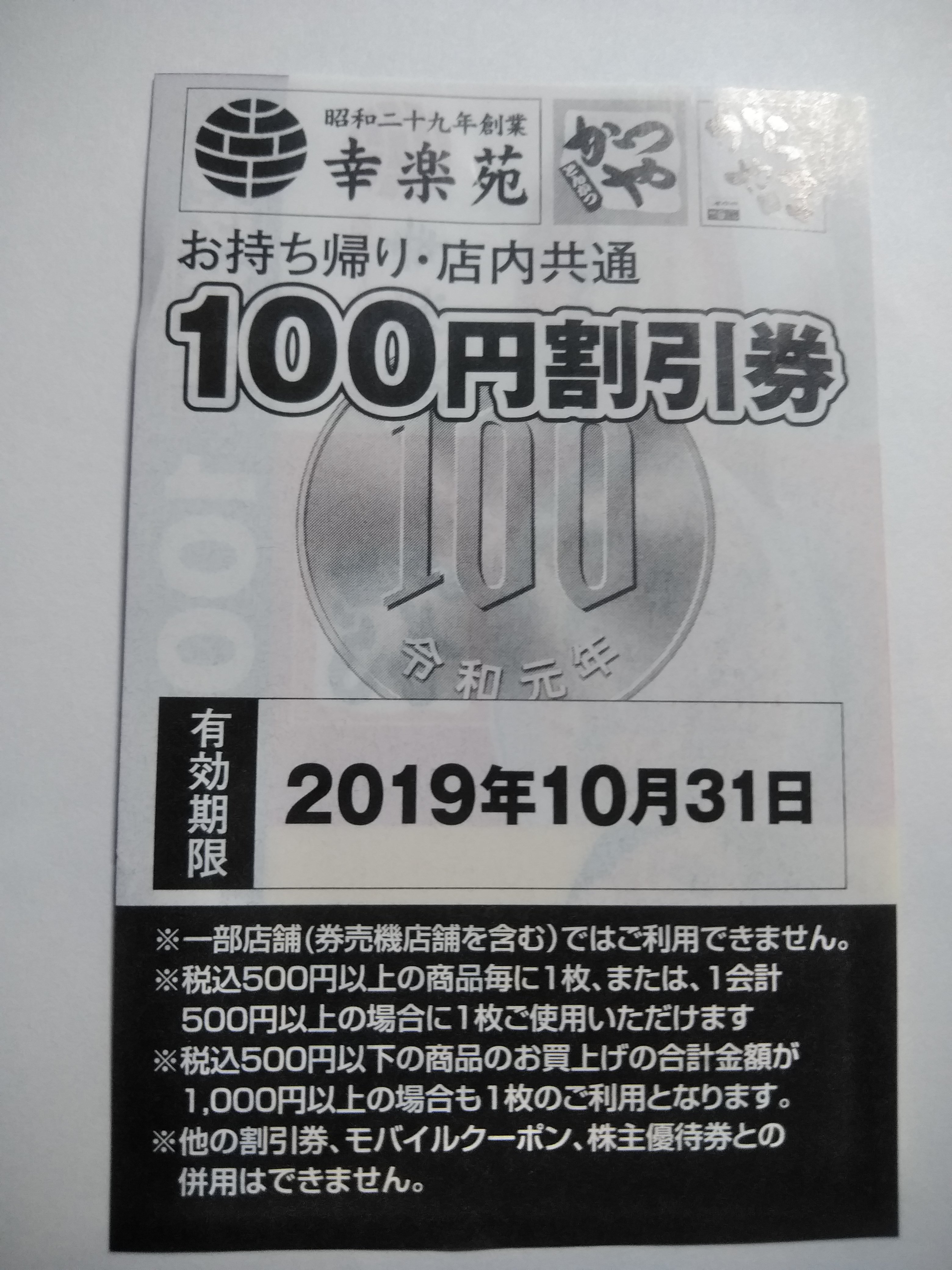 「幸楽苑」・「かつや」・「からやま」の3業態で利用可能な共通割引券を9/13より配布しています。共通割引券は、次回来店時3業態の店舗にて、500円(税込)以上の店内飲食や商品購入に利用できます。共通割引券は下記のように、100円の割引になります。