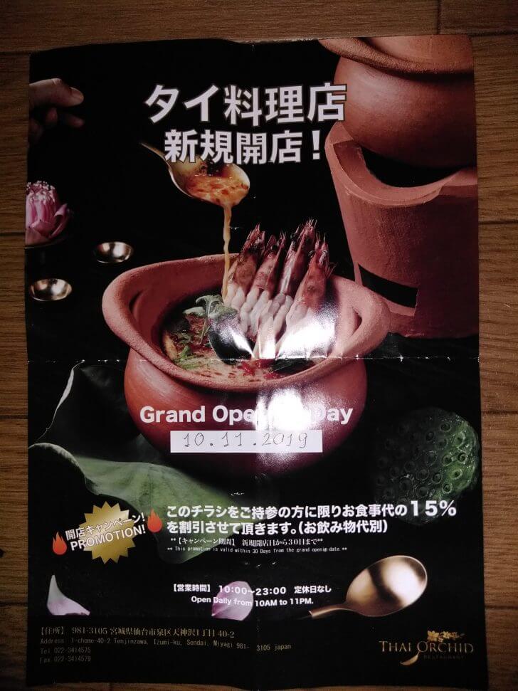 タイ料理店(THAI ORCHID RESTAURANT)が、仙台市泉区天神沢に11/10新規オープンしたようなので紹介したいと思います。