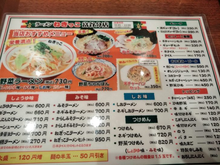 野菜ラーメンとねぎっこラーメンを注文