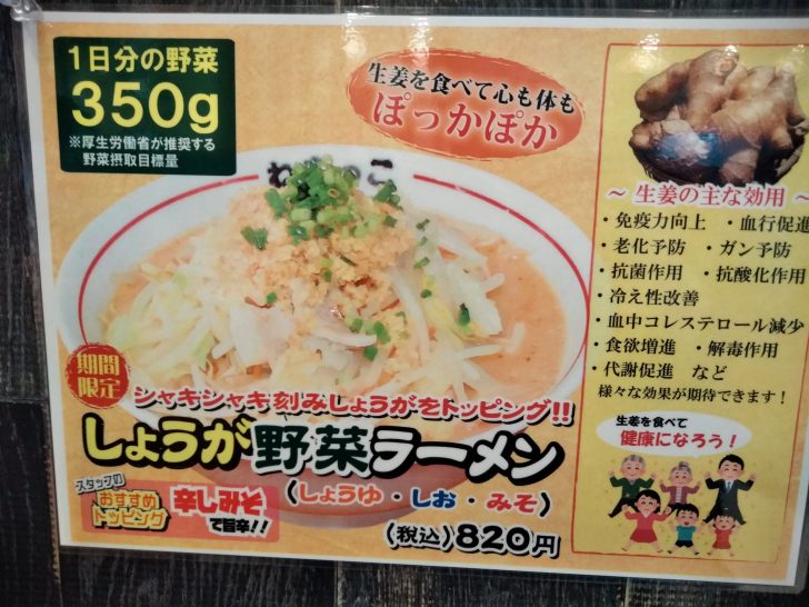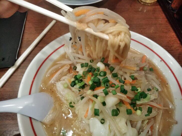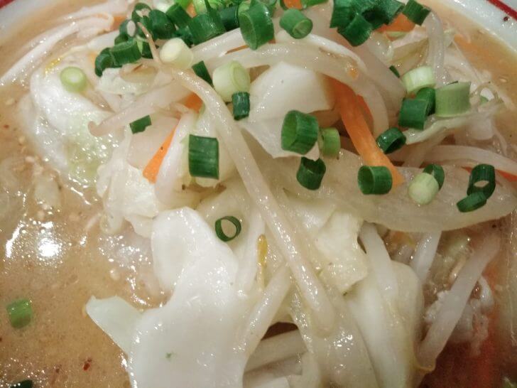 私は野菜たっぷりの野菜ラーメンを注文しました。ヘルシーで野菜もたっぷりとれるので良いですね。スープは濃いめの味噌味でコクもあって美味しいです。麺はコシがある中太麺で、スープに良く合います。