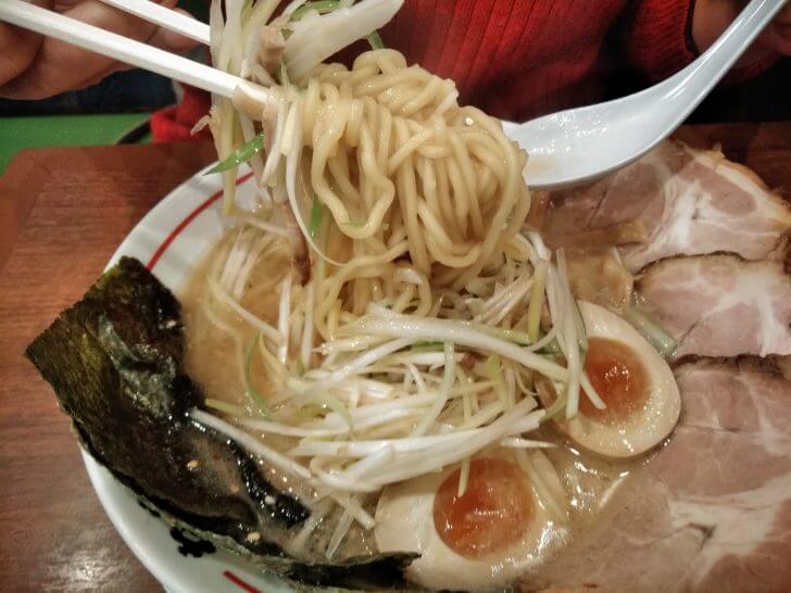 かみさんはねぎっこラーメンを注文。スープは、味噌豚骨で美味しいですね。麺は丸中太麺でモチモチですね。トッピングのネギは、ごま油で炒めてあるようです。あとは煮玉子、海苔、メンマ、チャーシュー、ほうれん草です。柔らかくて厚めのチャーシューが3枚も載っています。これで880円(税込)はお得ですね。さすがに店名を冠したメニューは最高に美味しいです。